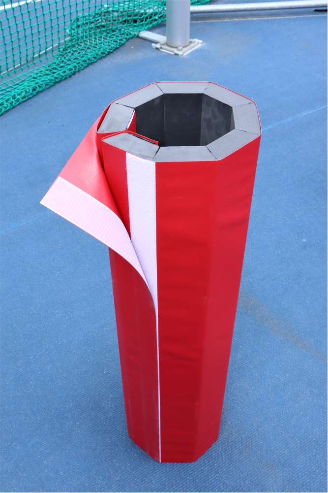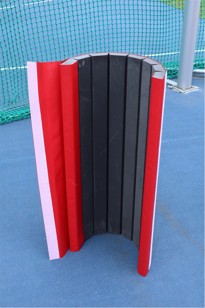 A complete set of hard foam pads designed to protect gate and extreme pillars of discus and hammer throw cages. Pads protect areas of the pillar which are exposed to damage during use. This set of foam pads extends lifespan of cages.